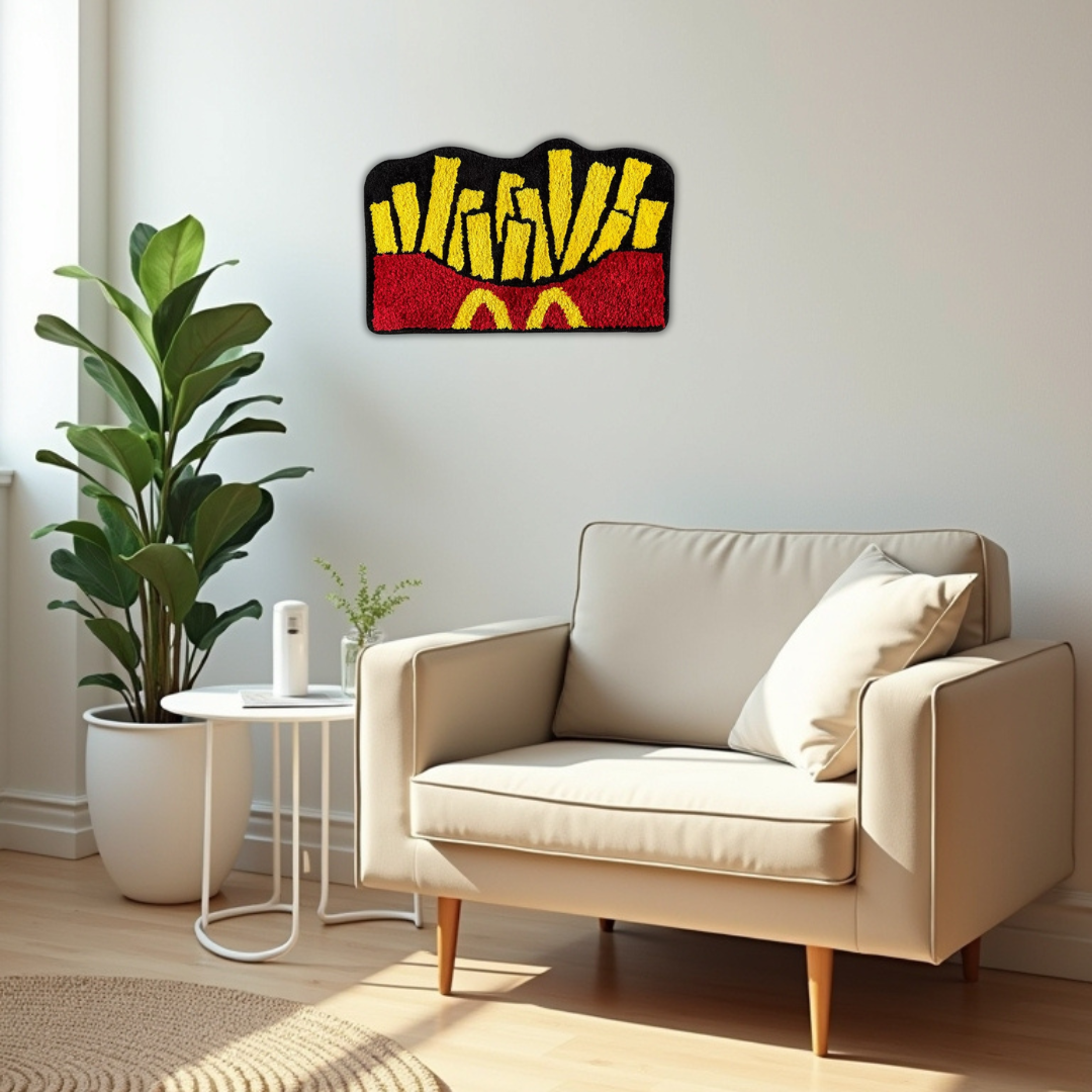 Golden, crispy, and full of personality — this hand-tufted stunner serves up serious fun for your space! Its playful fry-box design, complete with a cheeky half “M” nod to the golden arches, adds just the right dash of nostalgia.