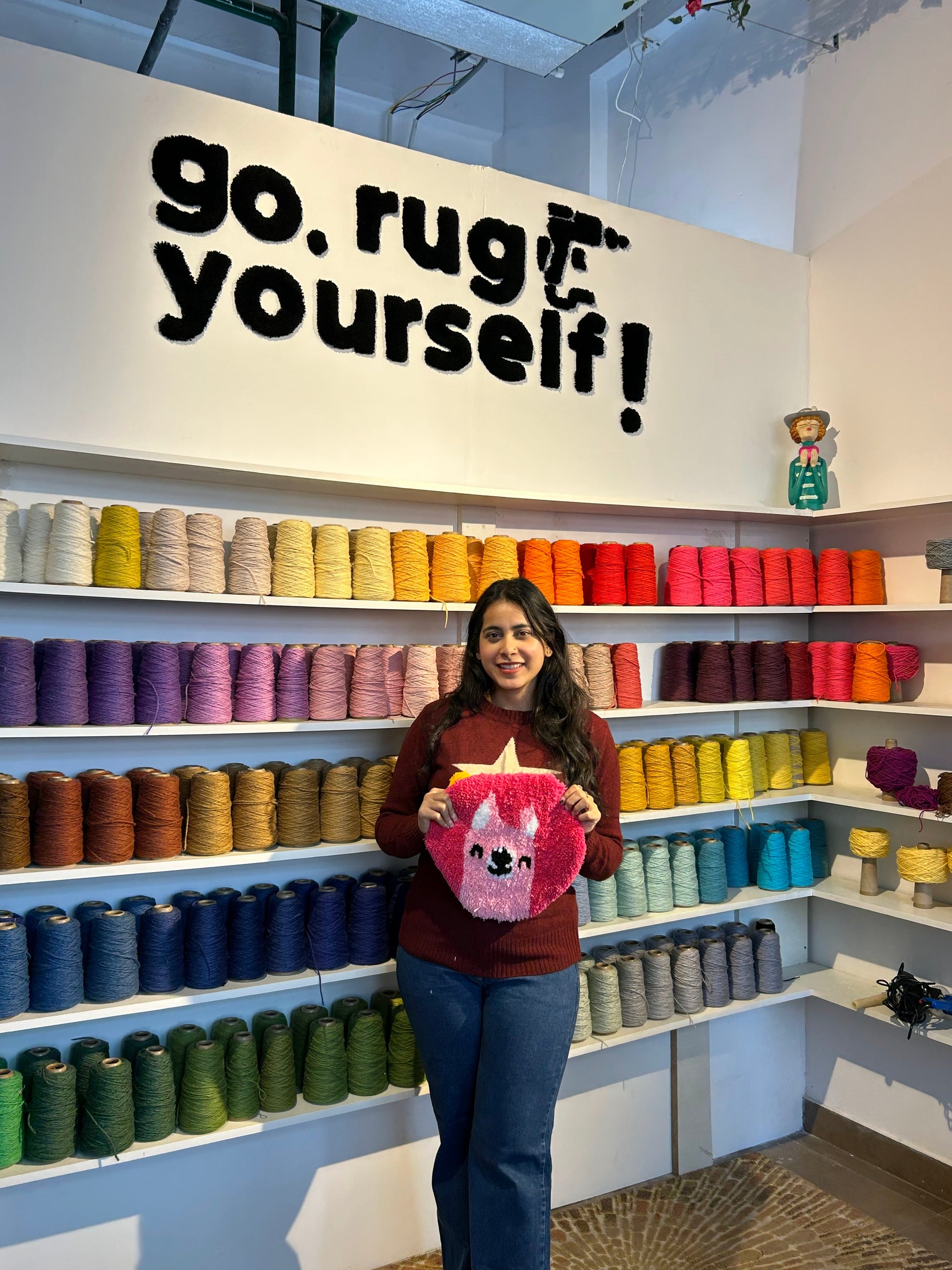 Tuft your rug in our studio. Pay balance after workshop